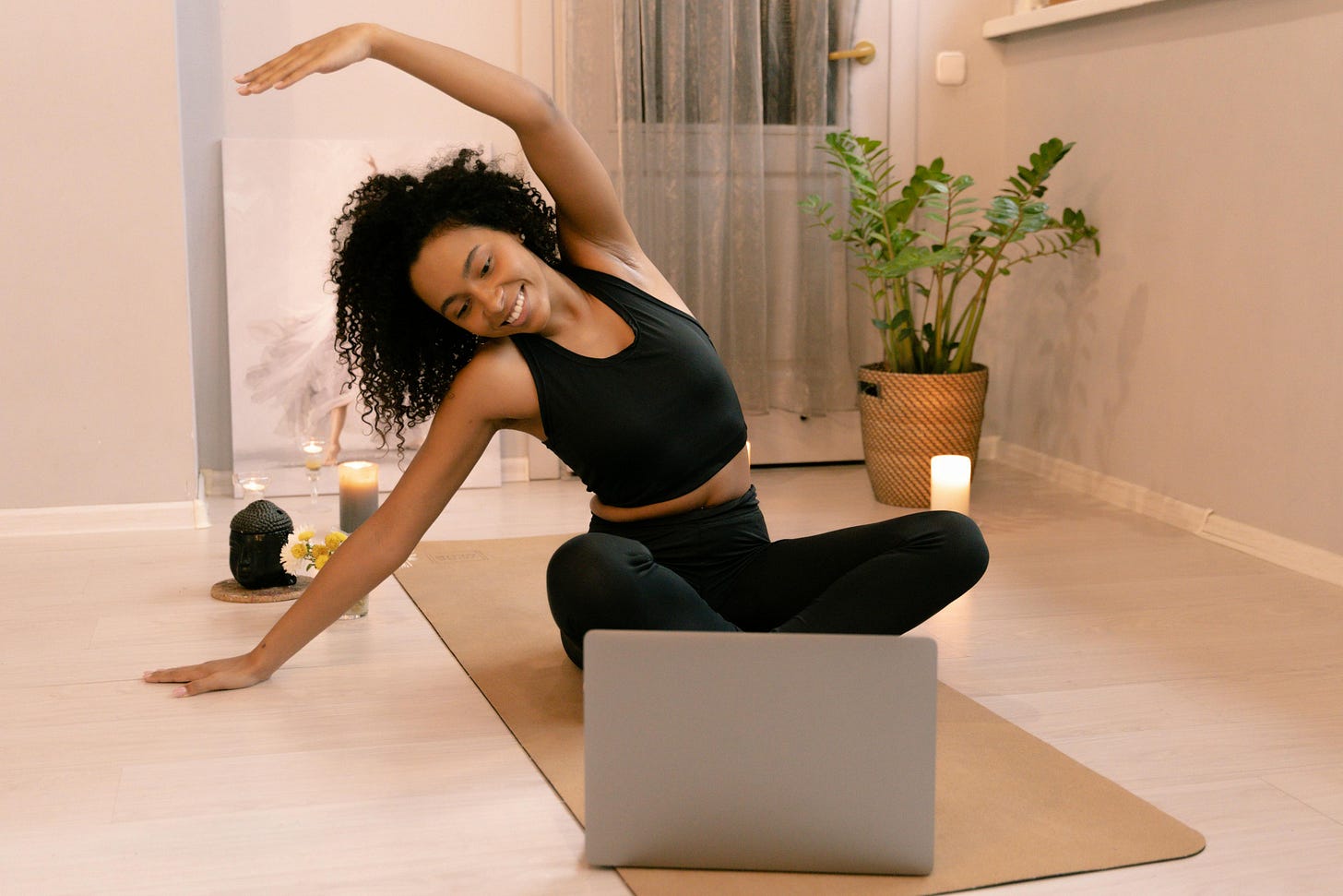 Picture it: lazy-girl yoga in cute pajamas, dancing to your favorite songs, meditations that leave you feeling like you’re floating on air.